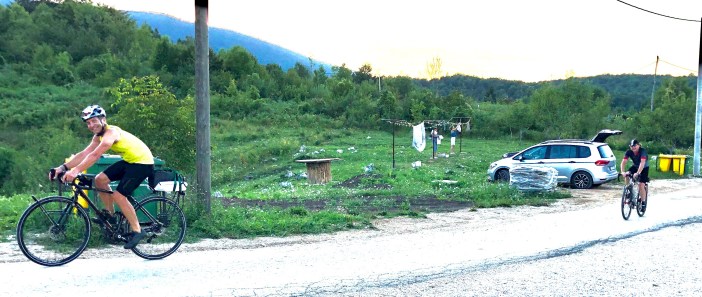 Nous arrivons à la pizzéria et moins de quinze minutes après, nous voilà en route via la route réglementaire asphaltée avec 17 km à faire.