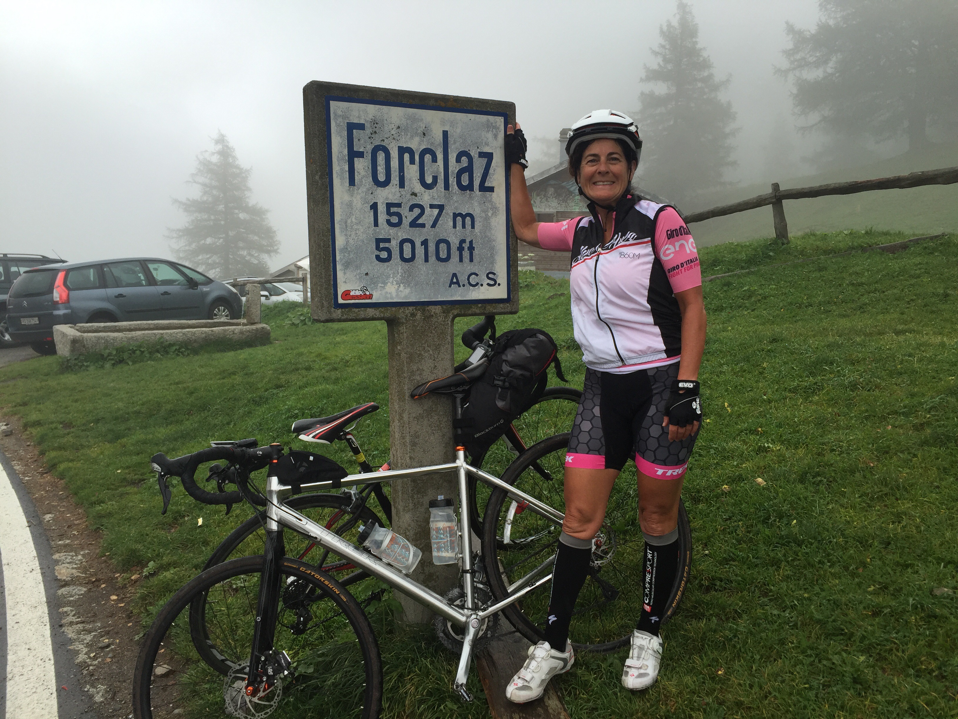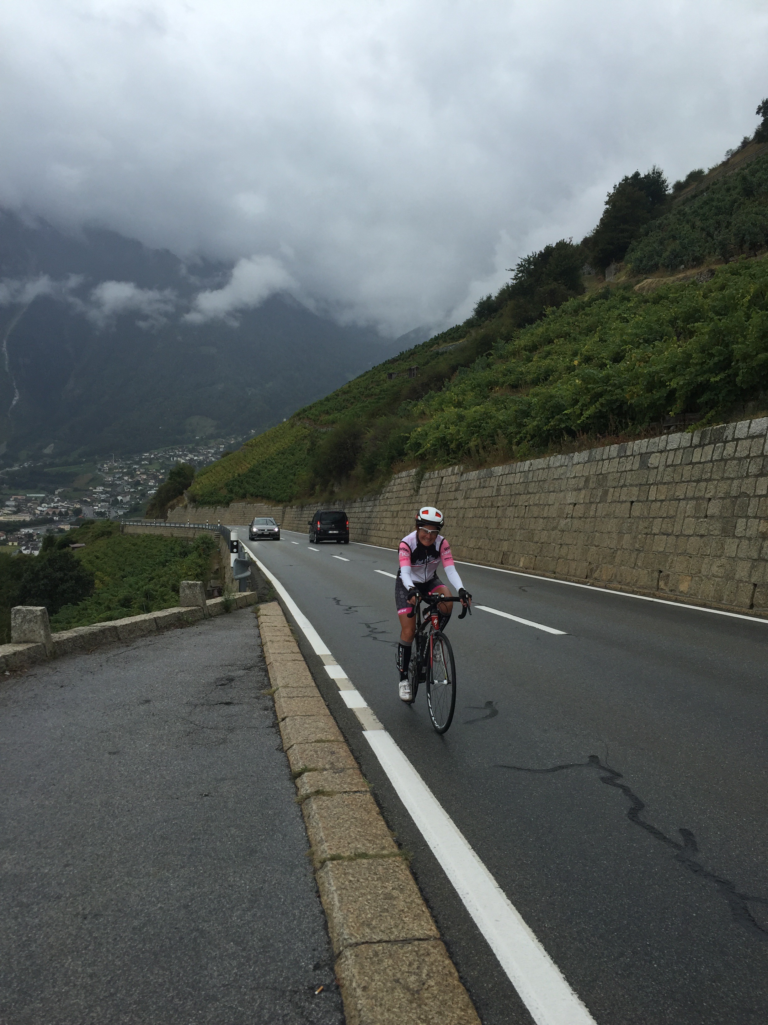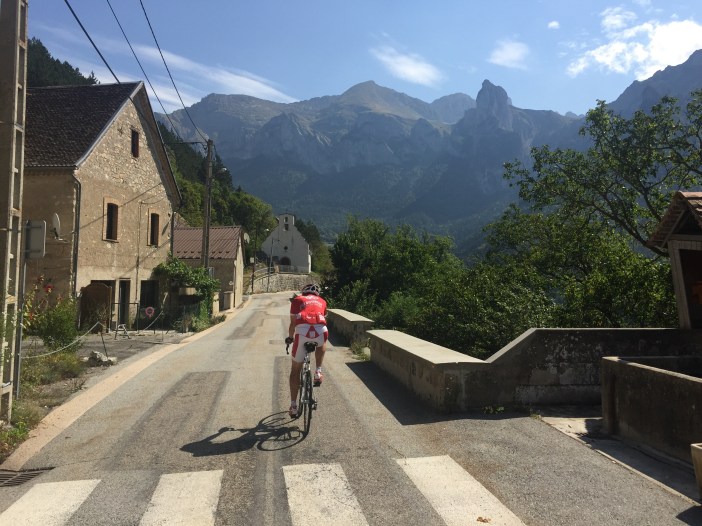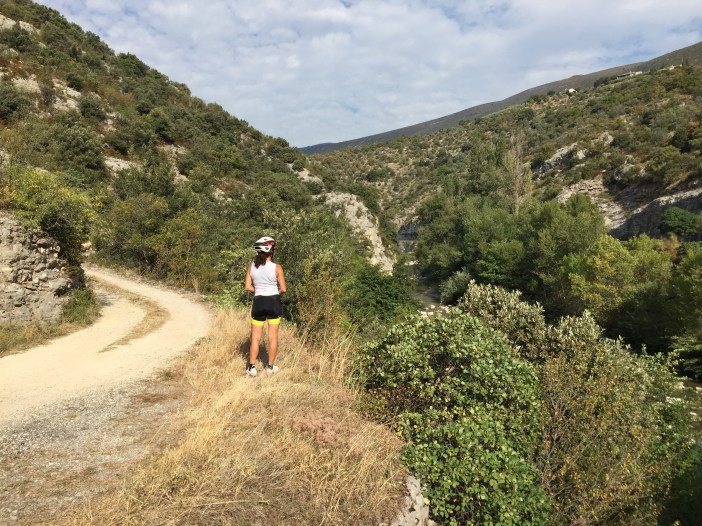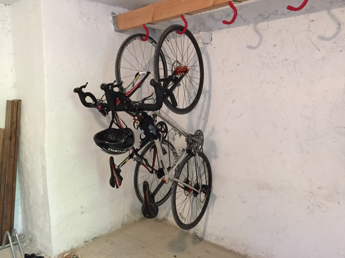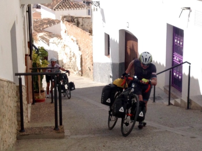 Je rencontre les filles à l’entrée du village puis on attaque l’ascension jusqu’à l’hôtel. La pente était tellement raide et les pavés rocailleux tellement lisses que les derniers quelques centaines de mètres ont été gravis en marchant à côté du vélo.