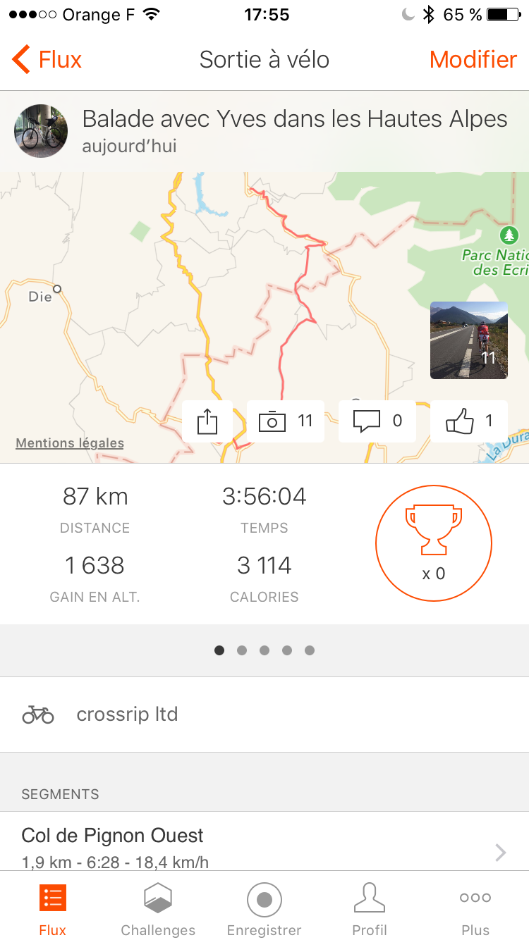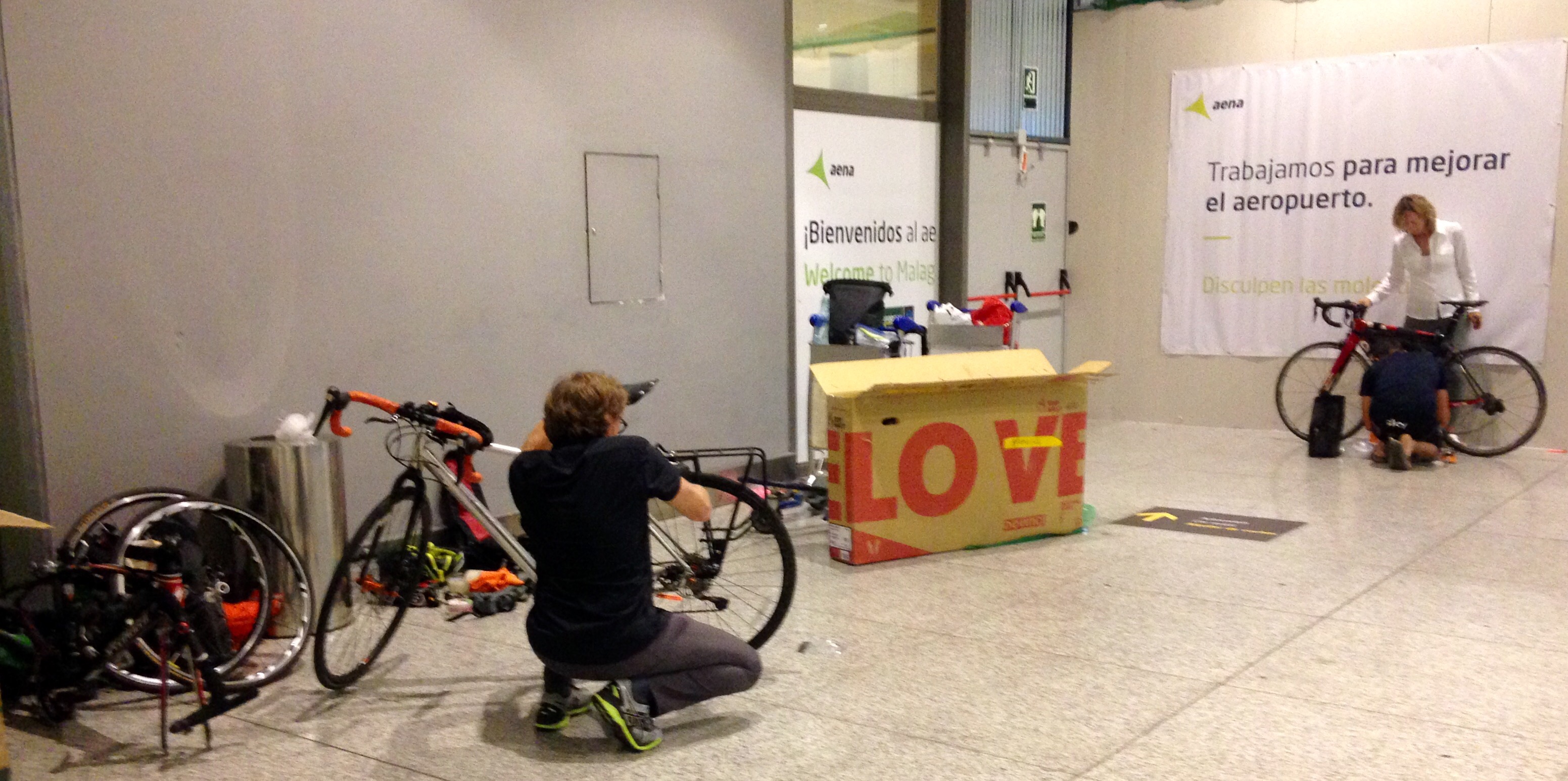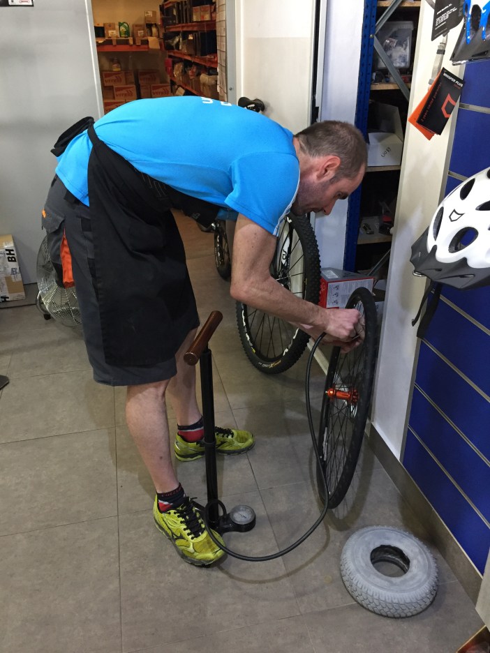 Cinq minute plus tard, je reçois un appel de la réceptionniste déboussolée pour me dire que le taxi est en chemin mais que Bruno devra défaire sa roue avant pour mettre son vélo dans le taxi.