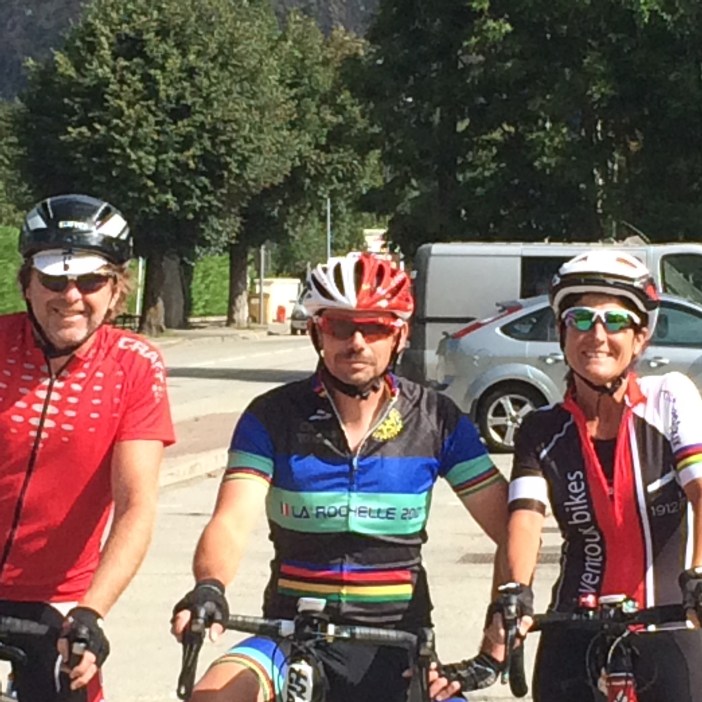 Michèle arrive à nous puis nous dit que la chaine de Bruno est coincée dans sa roue arrière.