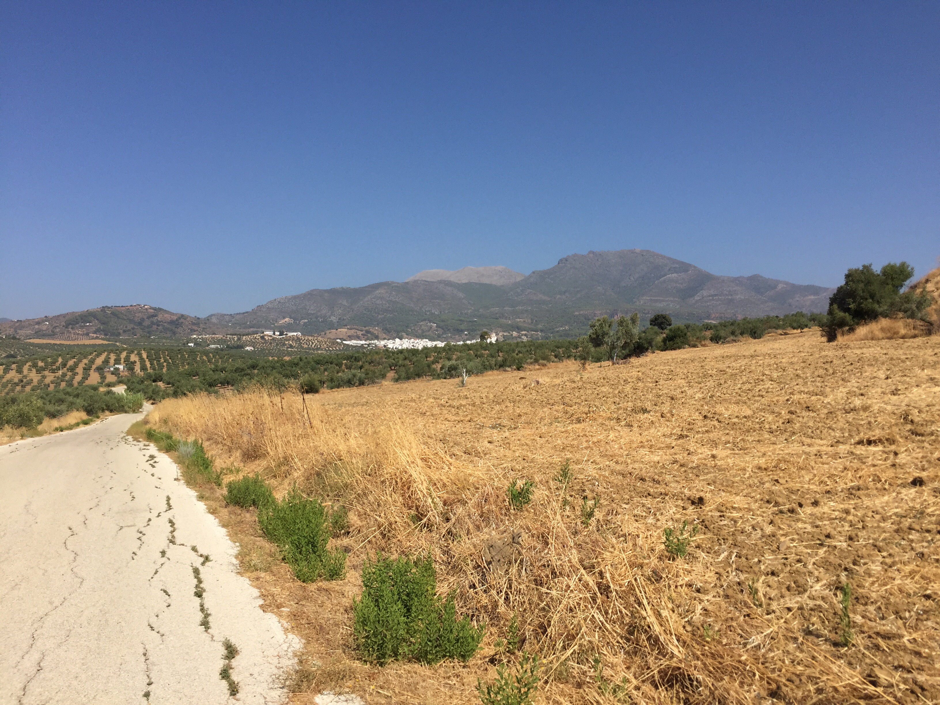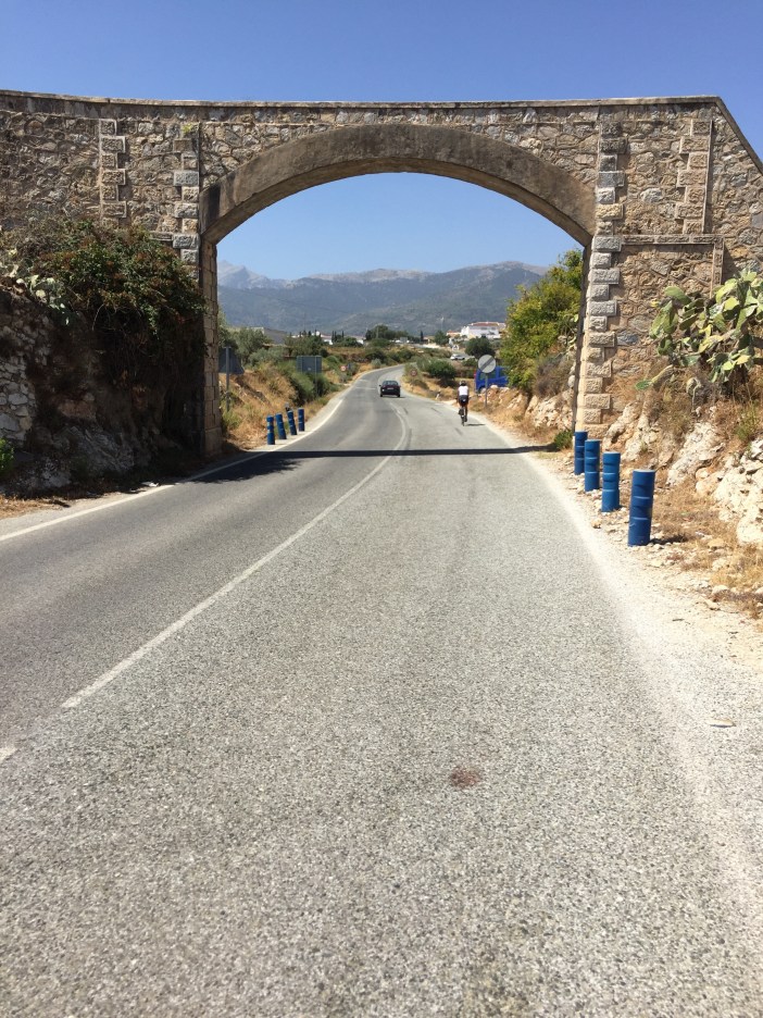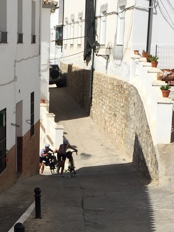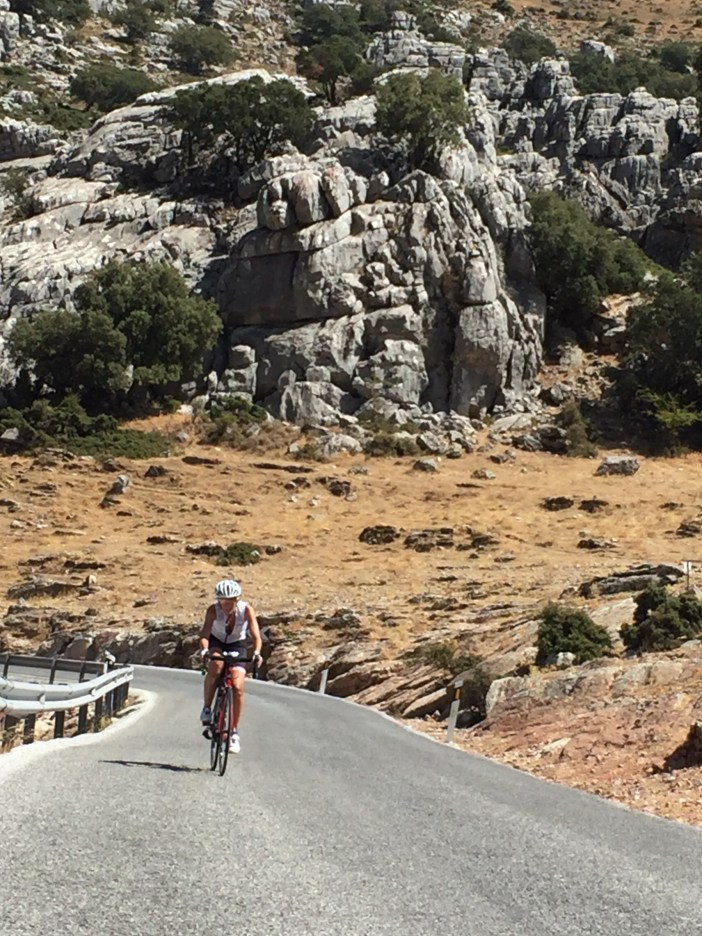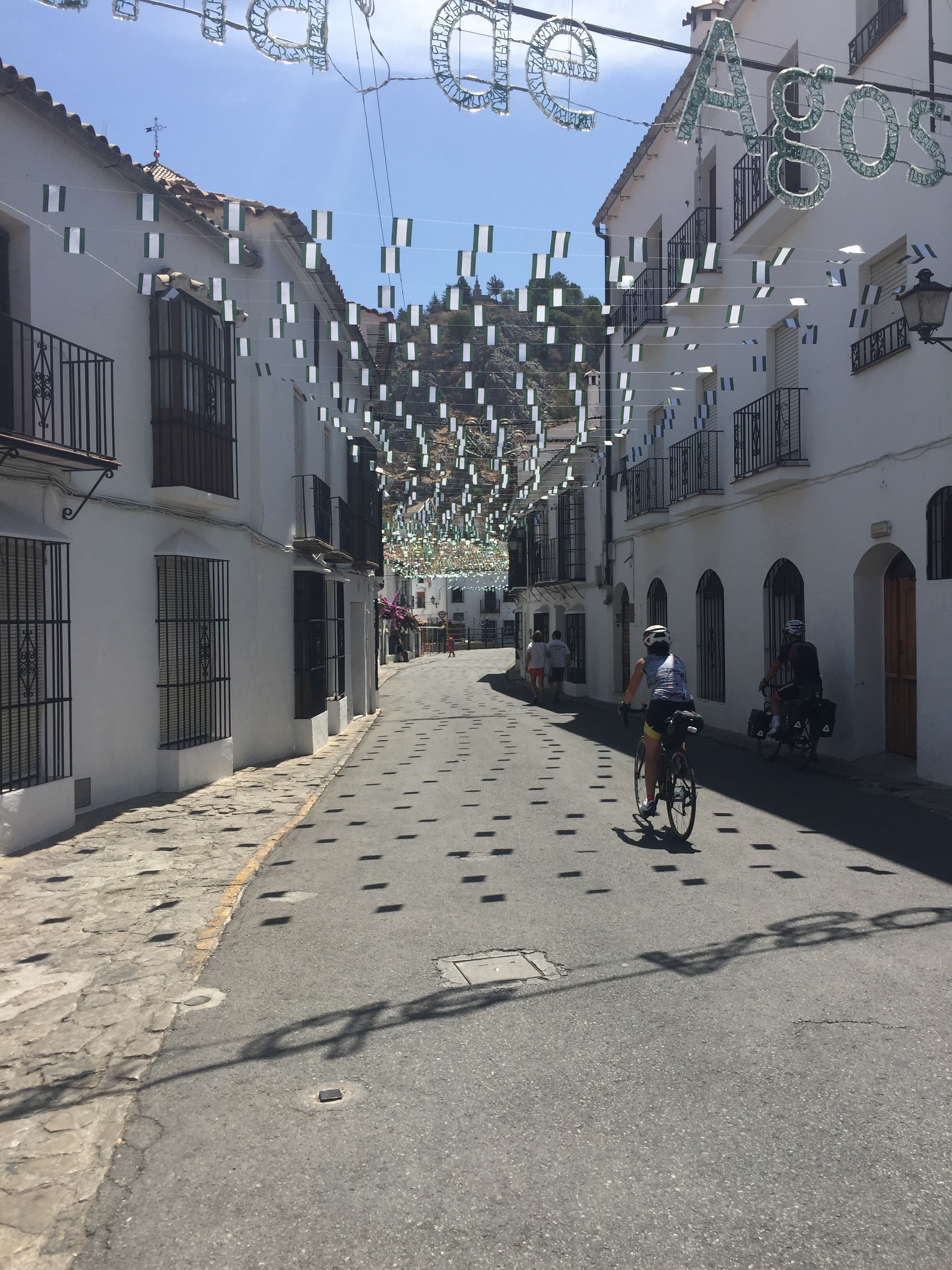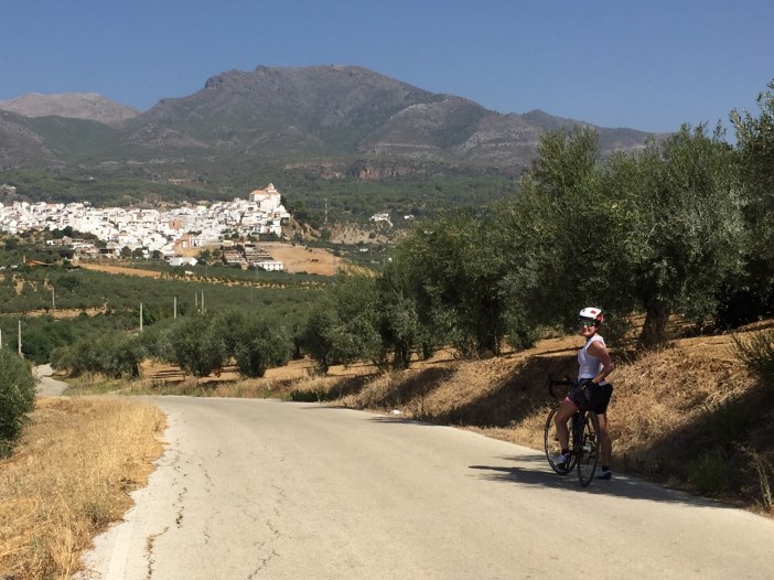 Pour les ferus d’histoire, ça remonte à la prise de Malaga par Isabelle I de Castille et Ferdinand II d’Aragon le 18 août 1487 (vive Wikipedia). Cette fête commémorative aurait débuté en 1491. Aujourd’hui, cela dure 9 jours avec feux d’artifices et les filles portes des robes traditionnelles. Nous en avons vues plusieurs durant notre pause resto mais étions trop épuisés pour les photographier. Nous venions aussi de constater qu’il restait 44 km de route et encore une bonne grimpette.