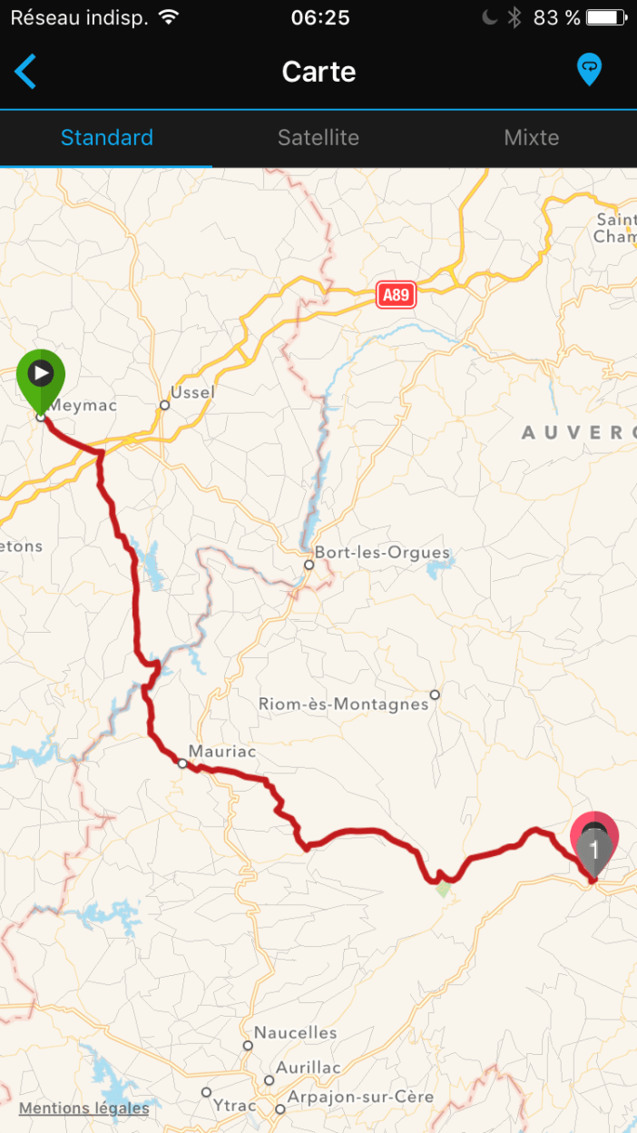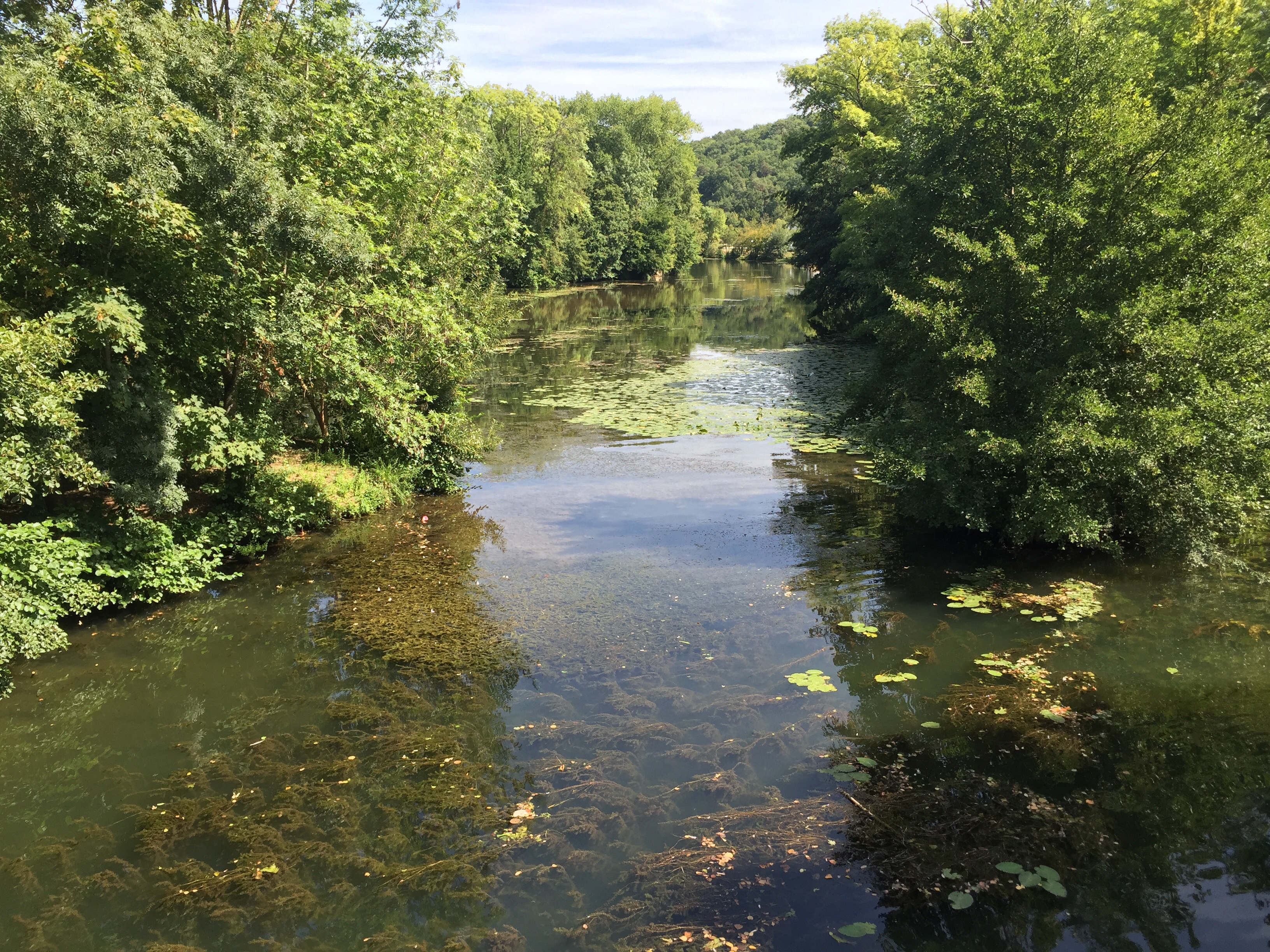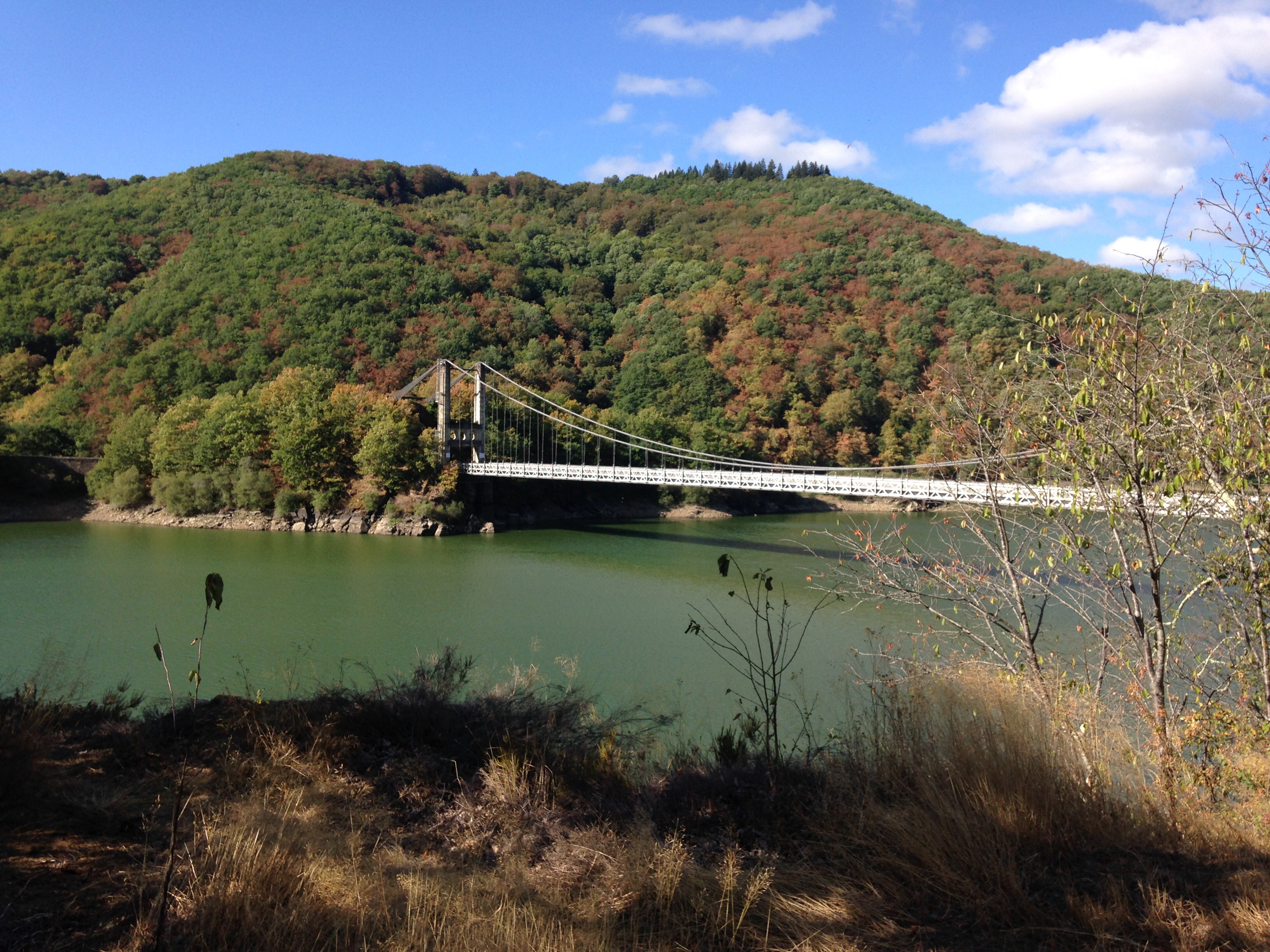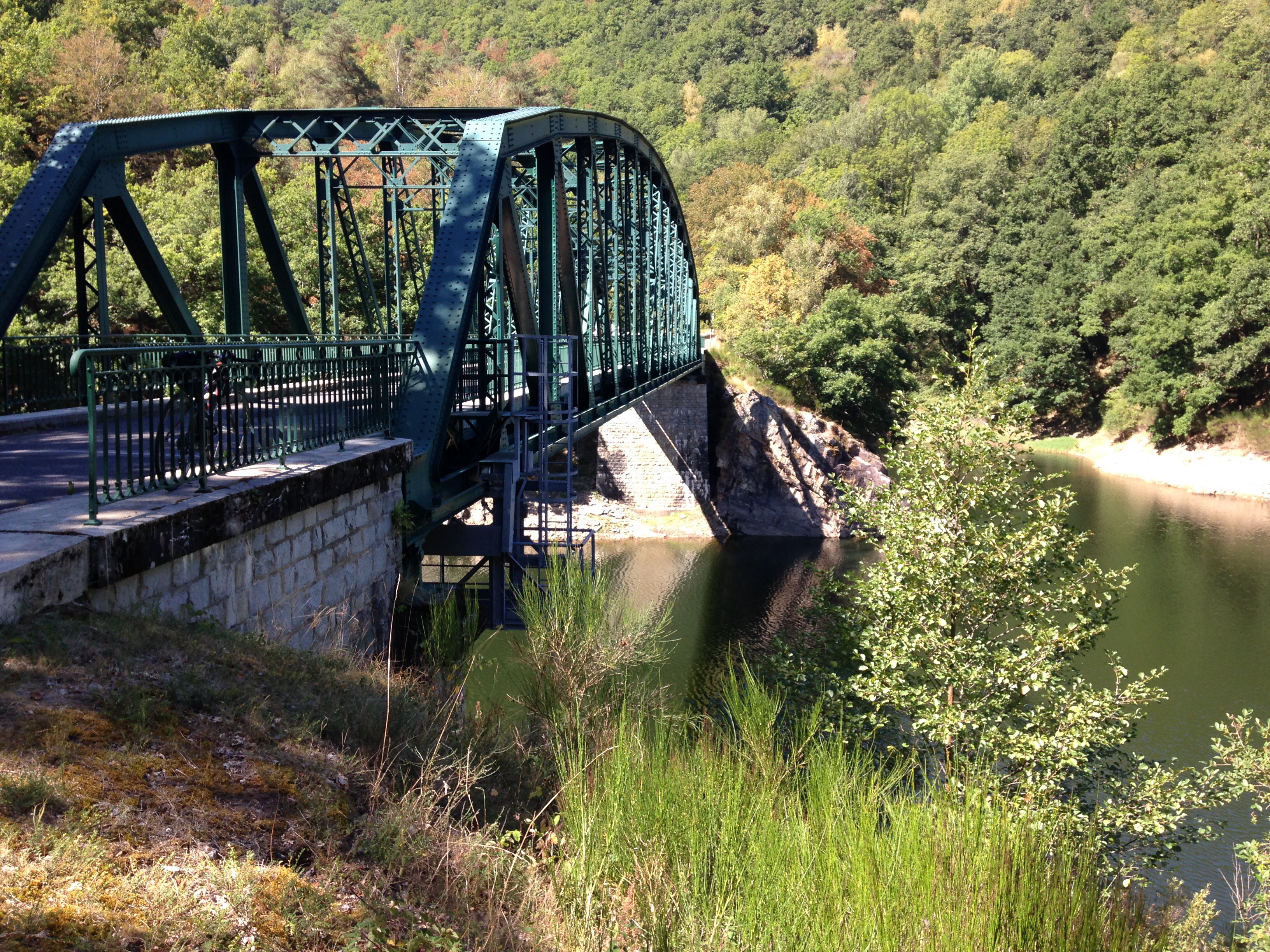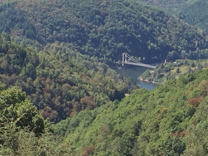 On quitte tôt notre hôtel exécrable après un déjeuner frugal et insipide pour se diriger vers Neuvic. Avoir su que ce petit village était si magnifique nous aurions passé outre Meymac pour venir coucher ici. On fait des provisions en chocolat et Coca cola au Spar puis entrons dans une forêt suivant la tranquille D982 pour effectuer une longue descente vers le pont traversant la Dordogne.