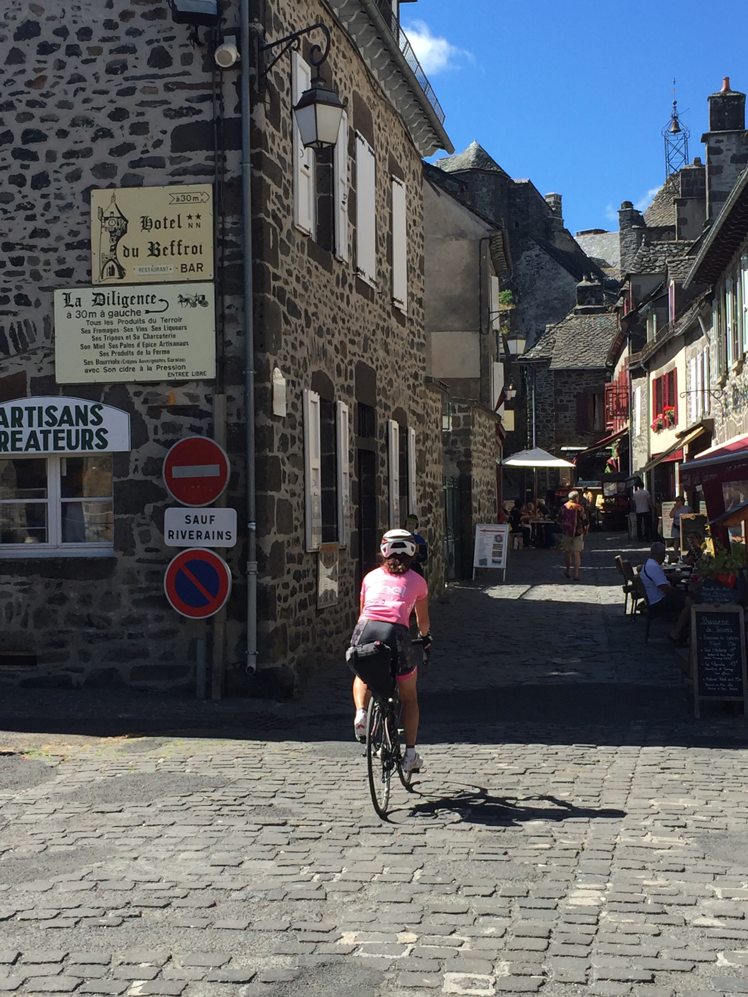 Nous traversons ensuite Mauriac, ville peu remarquable pour se diriger vers Salers. Celle-ci, merveilleuse à souhait, est notre portail du Parc Naturel Régional des Volcans d’Auvergne. Ici on s’enorgueilli du « boeuf de Salers » et des multiple fromages locaux. Il y a aussi le vin local dont j’ignorais l’existence.
