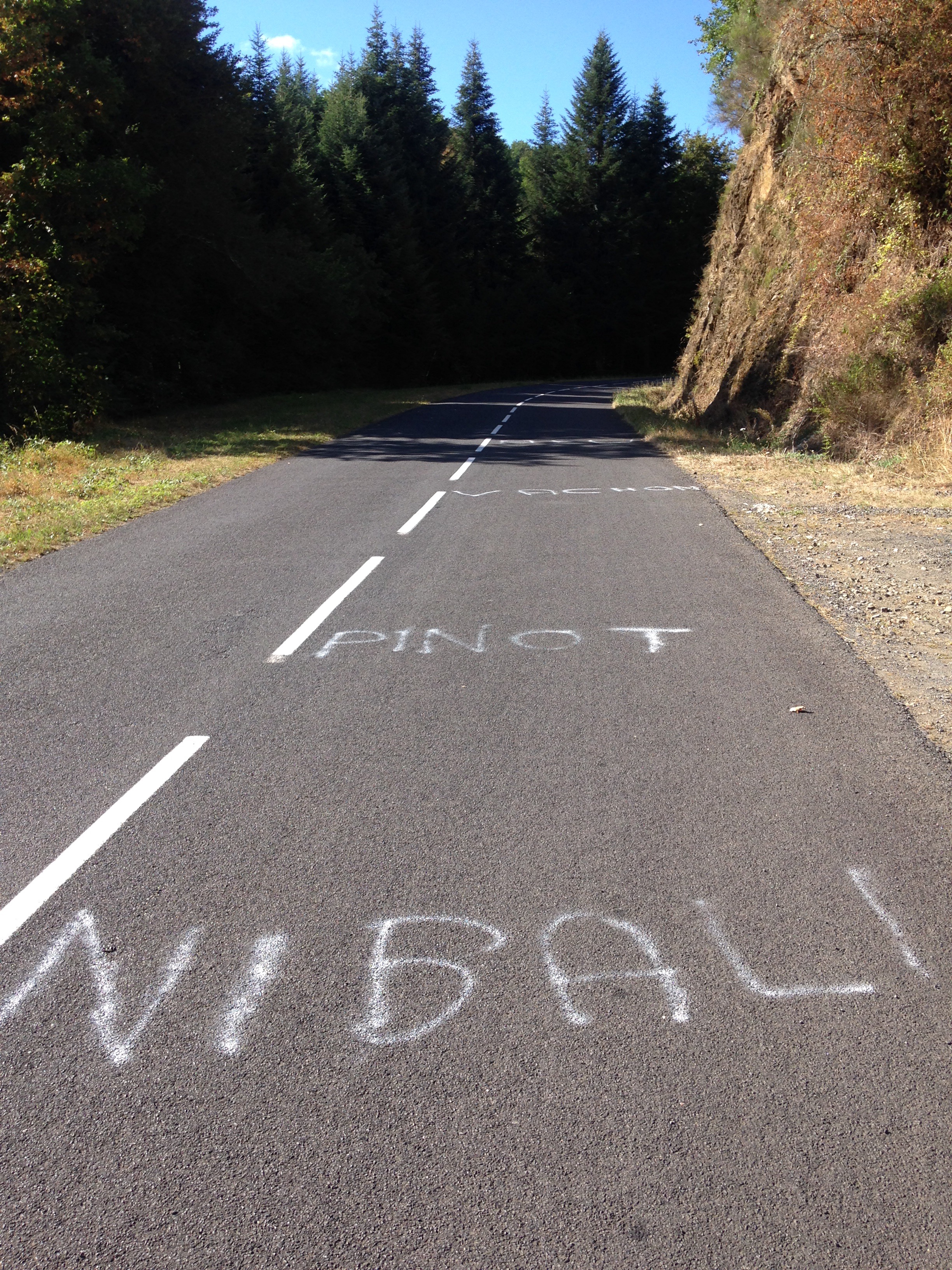 Évidemment, en vélo, tout ce qui descend remonte. Par contre, nous étions encouragés par les graffitis sur le pavé gribouillés par les fans du TDF.