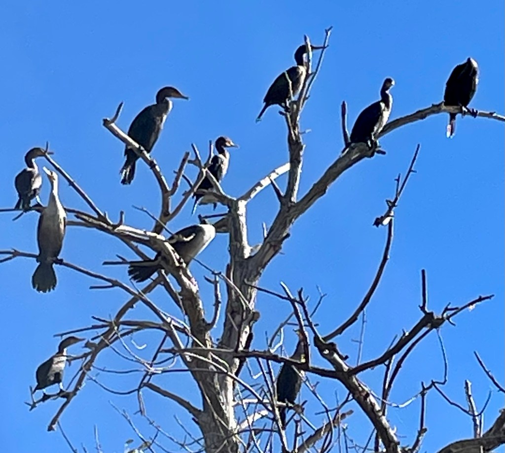 L’arbre au cormorans que nous avions vu à l’aller a meilleur mine sous un ciel bleu.