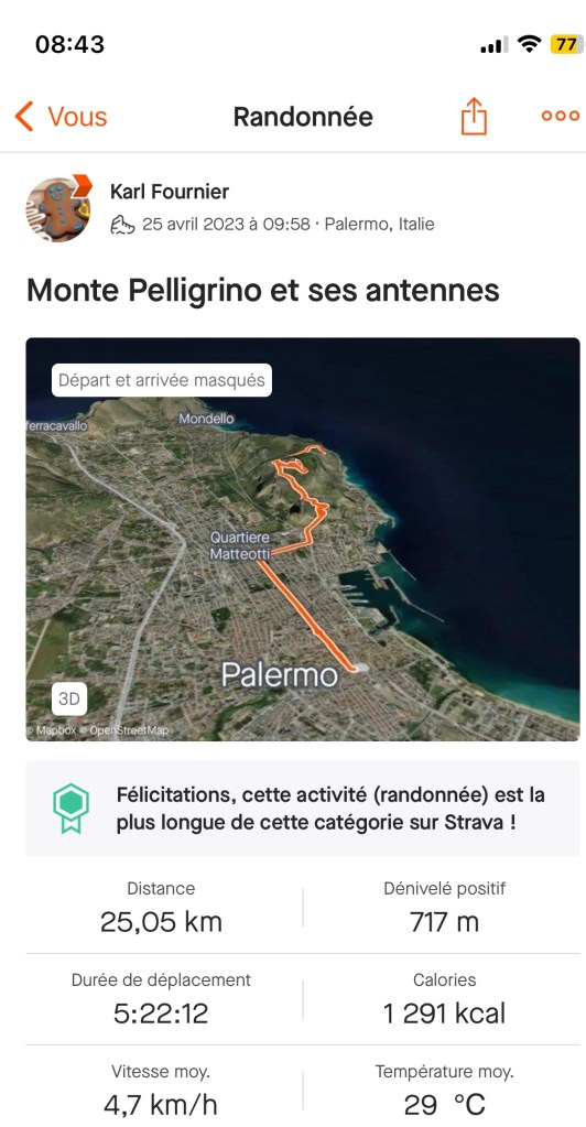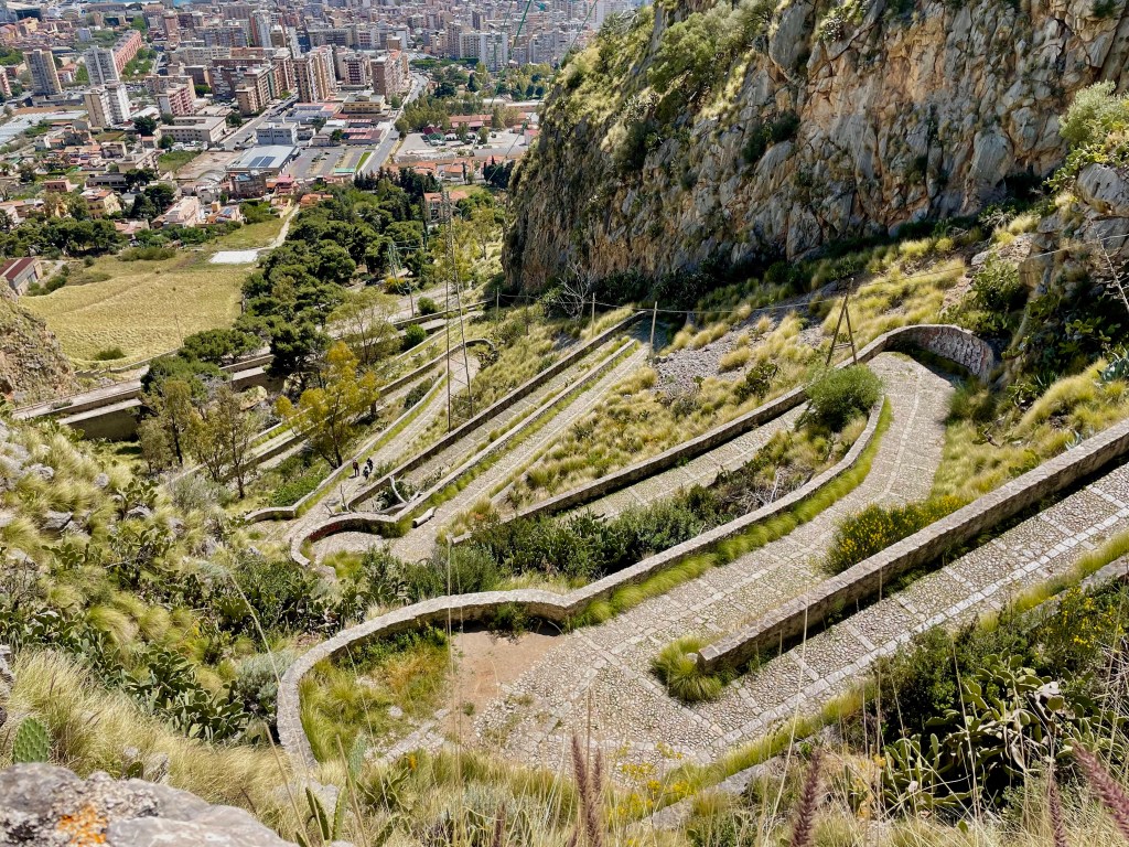 Le lendemain, à force d’entendre le bruit incessant de Palerme, un mini trek en dehors de la ville s’impose alors nous partons vers le Monte Pelligrino.
