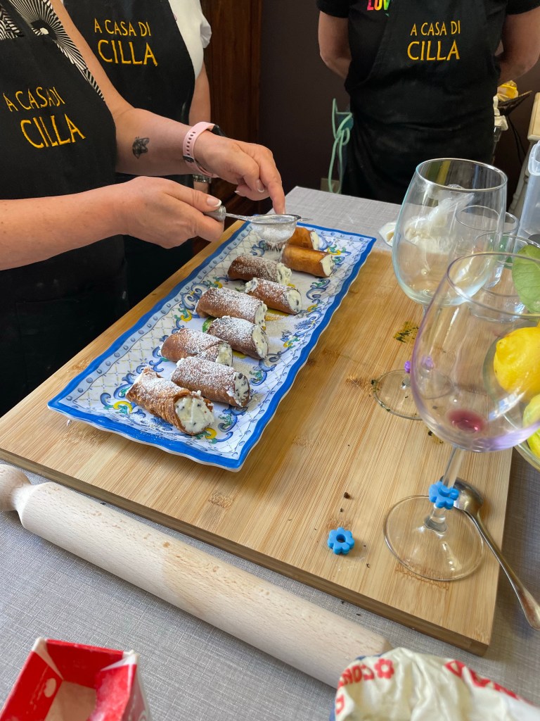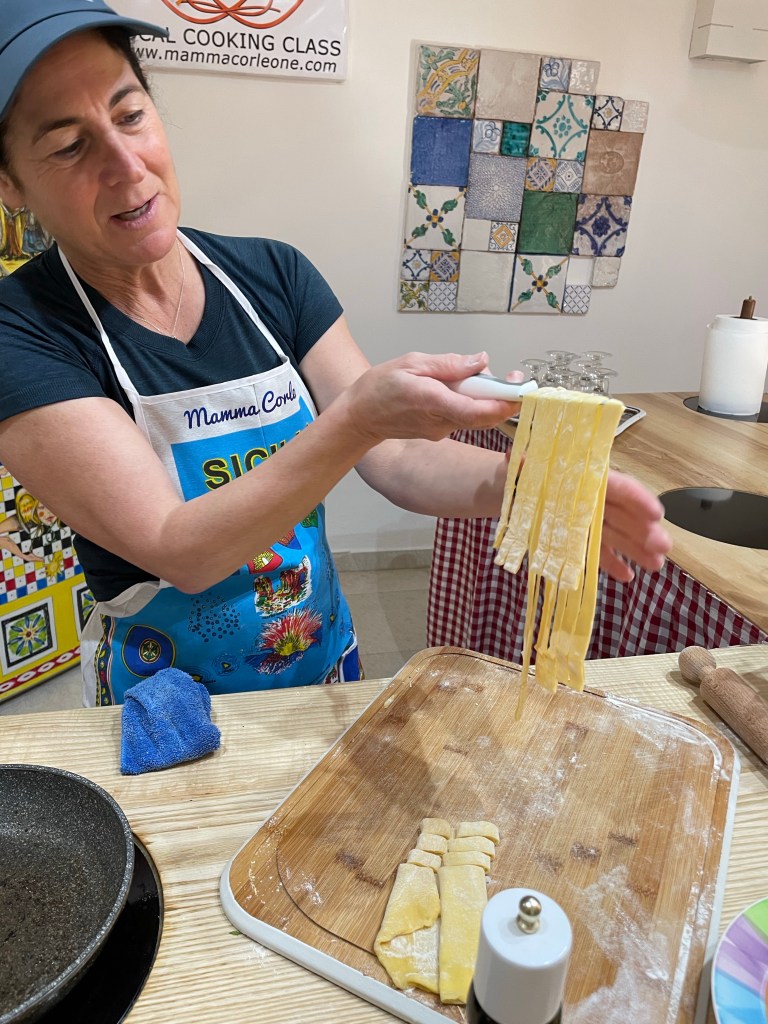Nous apprendrons à nouveau à faire des pâtes fraîches, une recette d’espadon, à faire du pesto et aussi à faire des cannoli.