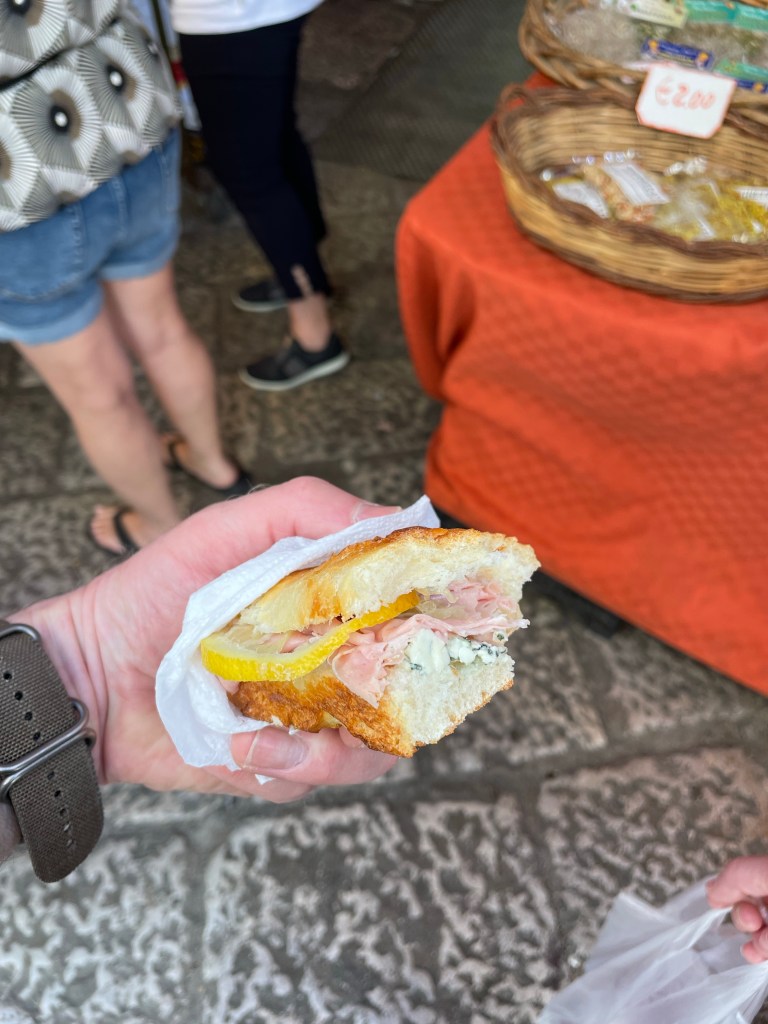 Le lendemain, Maxime et Geneviève qui devaient arriver vers midi de Cefalù, commencent à nous texter vers 10:30 voulant qu’on se rejoigne au Mercato del Capo.