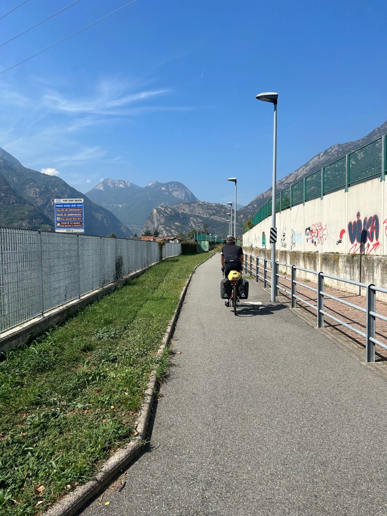 La route entre Turin et Bard est merveilleuse en vélo à partir du moment où l’on laisse vraiment la ville et ses banlieues. Conclusion, rentrer et sortir de Turin à vélo est fastidieux.