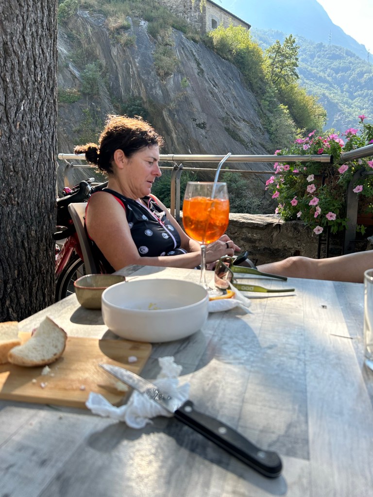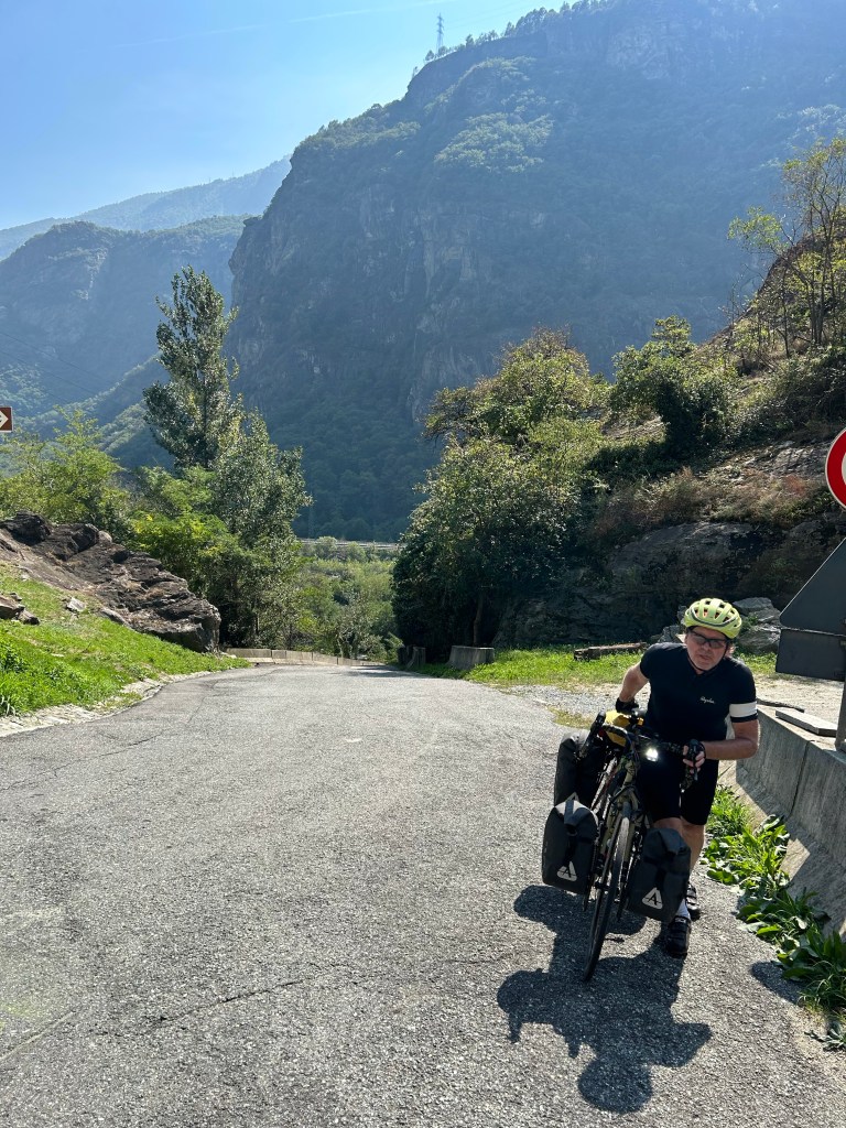 Alors nous attaquons plutôt la montée pour sortir d’Aoste suivie d’une descente à tester les freins pour ensuite entreprendre la dernière montée de 700 mètre sur 16 km.