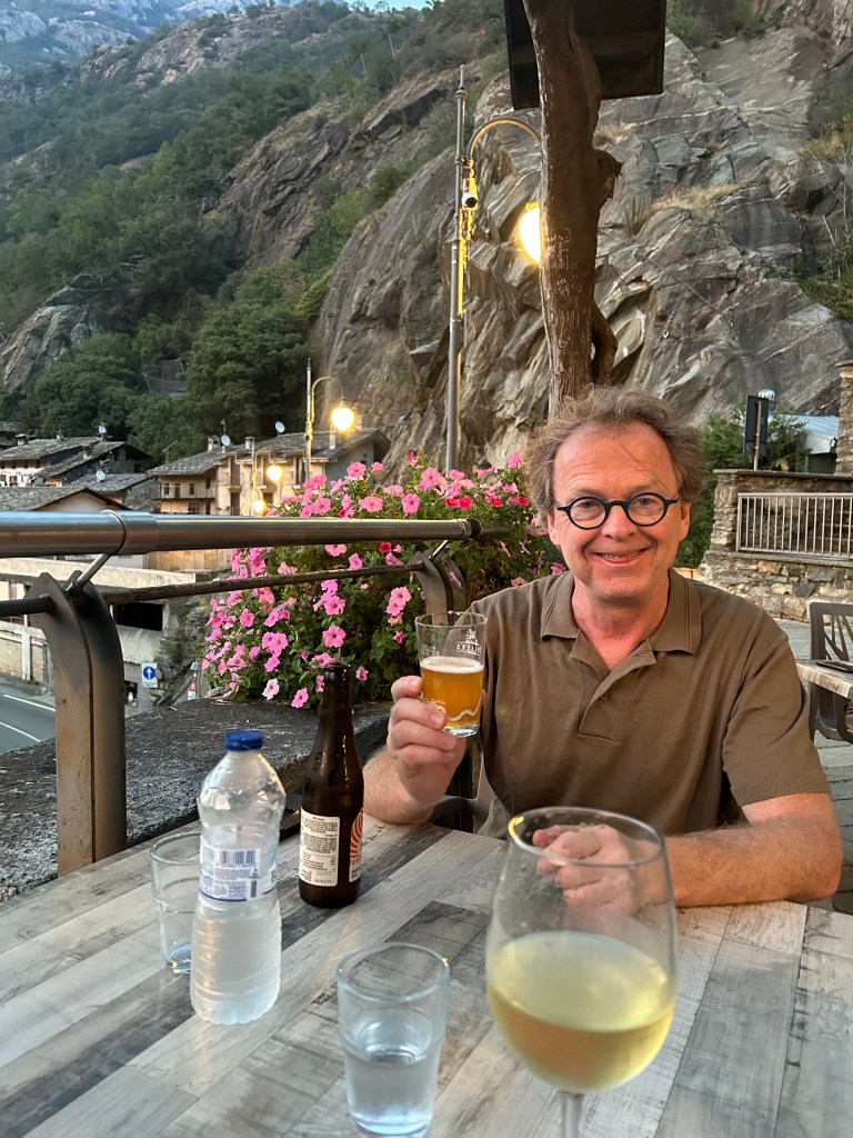 Revenons à la maison Farinet. Le logis est impeccable. La dame qui nous accueille a eu l’énorme gentillesse de prêter sa voiture à Brune et Michèle hier pour qu’ils puissent aller souper à Étroubles et elle répétera le geste ce soir pour nous quatre.