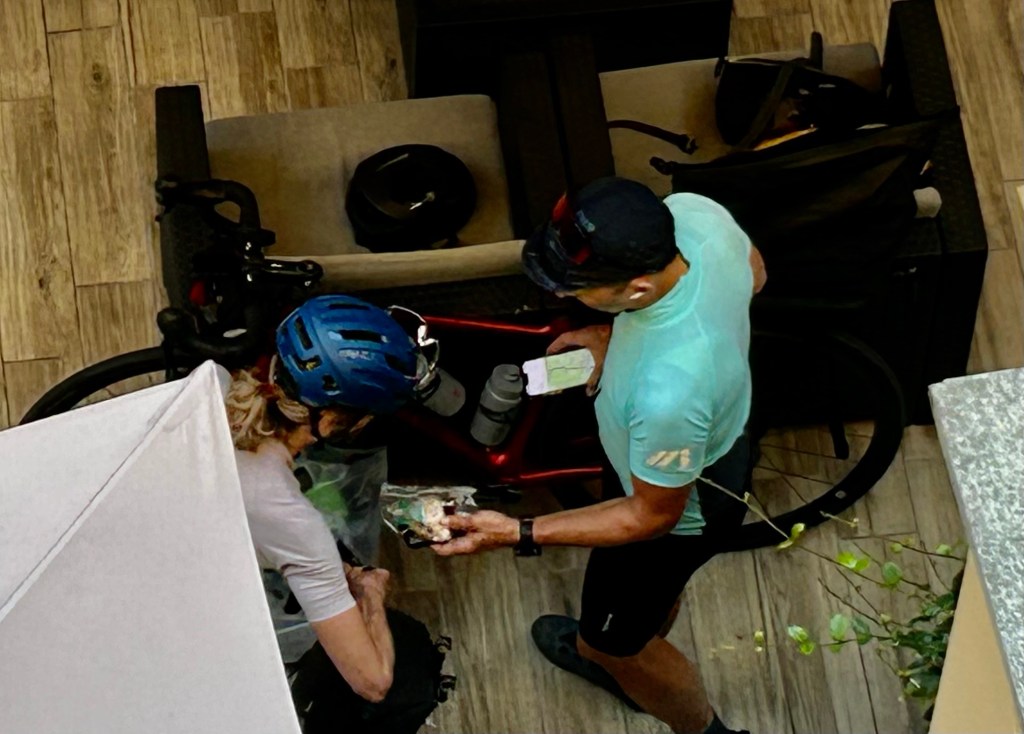 Après une bonne nuit et un bon déjeuner, nous finalisons la préparation des vélos. Chaque hôtel a ses propres modalités pour l’entreposage des vélos.