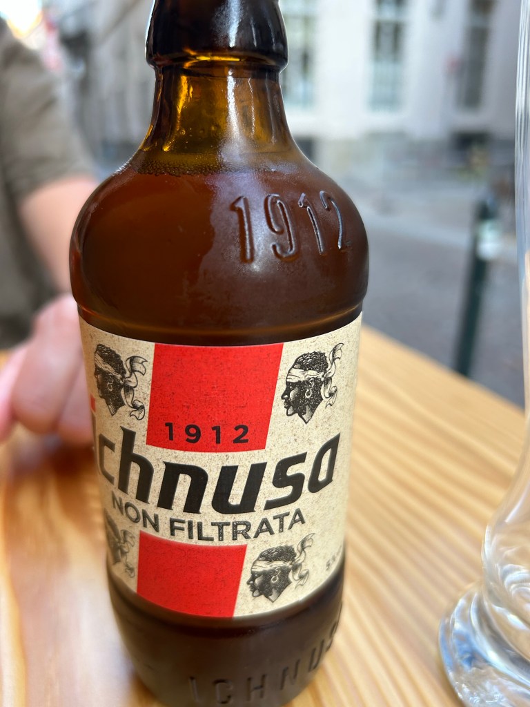 Hélène teste l’apérol spritz du Km5, supposé être un des meilleurs de Turin. Bref, ce n’est pas le cas alors, vive la bière des Maures.
