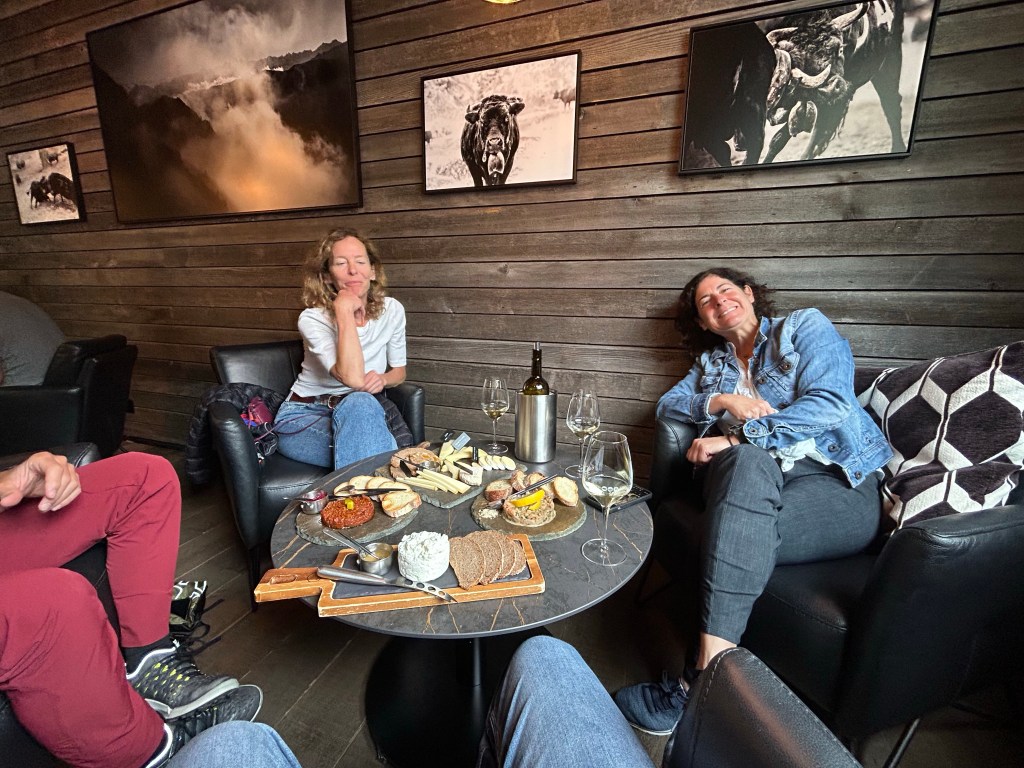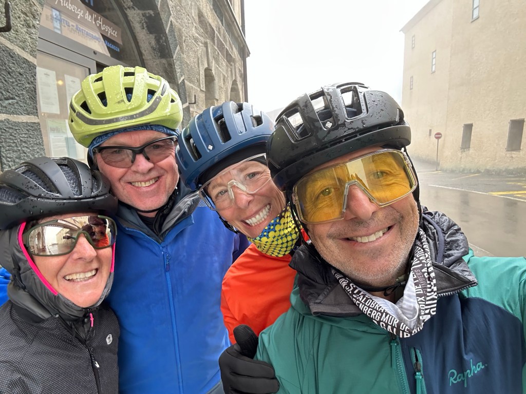Toutefois, la pluie se manifeste durant le souper laissant présager des conditions moins bienveillantes pour demain. Espérons que nous n’aurons pas besoin de service de marronnage pour traverser le col du Grand-St-Bernard demain.