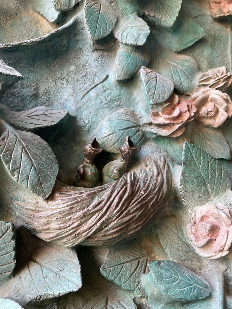 La vouteDétail dans la porte de bronze à l’entréeL’arrière, représentant la crucifixion, des colonnes sont à l’image de côtes de la cage thoracique et des supports représentent des muscles étirés. Fascinant tout de même.