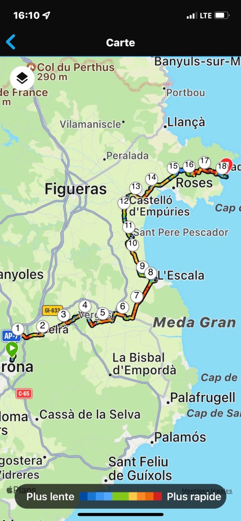 Pour ce qui est de notre trajet Gérone-Cadaqués, nous étions en mode contemplatif puisque ce fut une de nos plus belles randonnées à vie alors laissons parler les images.