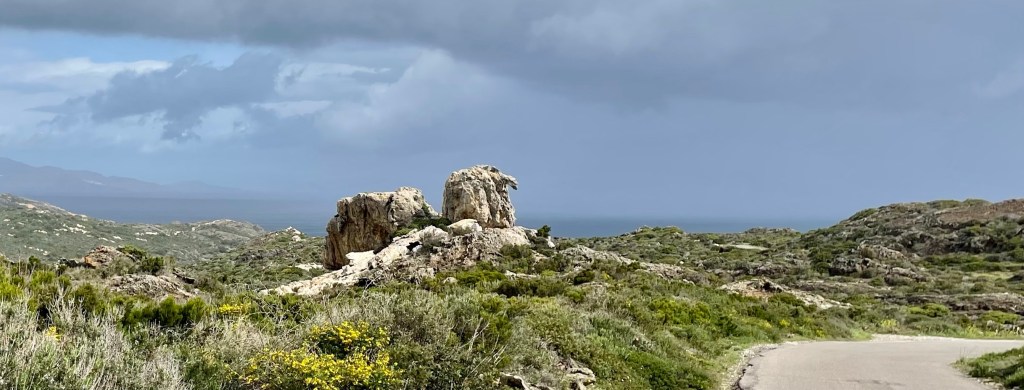 Nous dégustons un de leurs rosés locaux puis admirons le paysage sous un ciel menaçant.