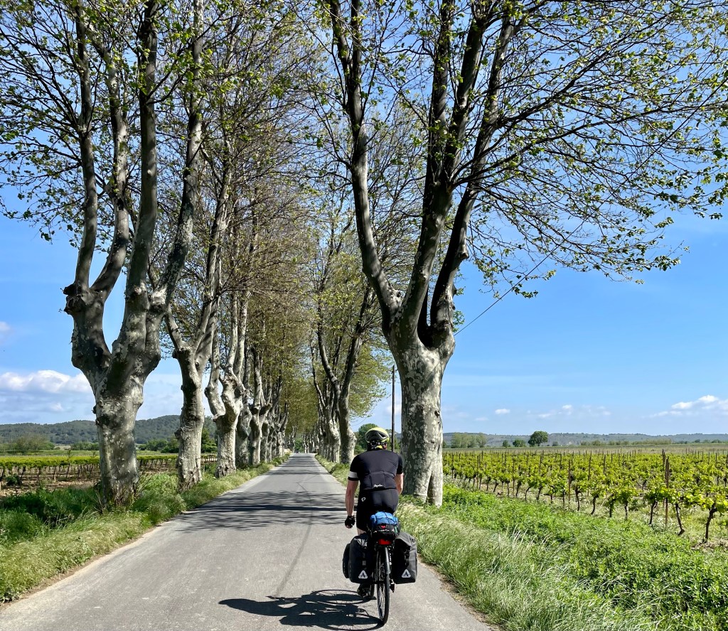 Nous nous rendons d’abord à Béziers. Chemin faisant nous pouvons rouler sur les petites routes au travers les champs de vignes, parfois bordées par de magnifiques platanes. Ça ressemble à des vacances!