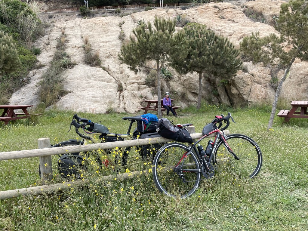 Nous avons fait une pause café à Escala.Au loin, on aperçoit les Pyrénées enneigées nous défiant de les franchir demain. L’hôtel Sol Ixent, à Cadaqués, est magnifique avec un endroit sécuritaire pour les vélos et un personnel parlant français.
