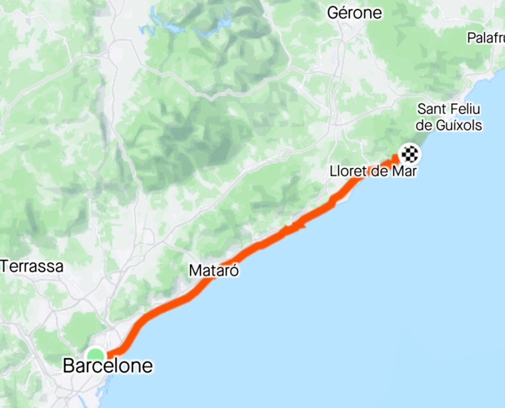 Barcelone-Tossa de Mar: 85,33 km, 486 m d’ascension