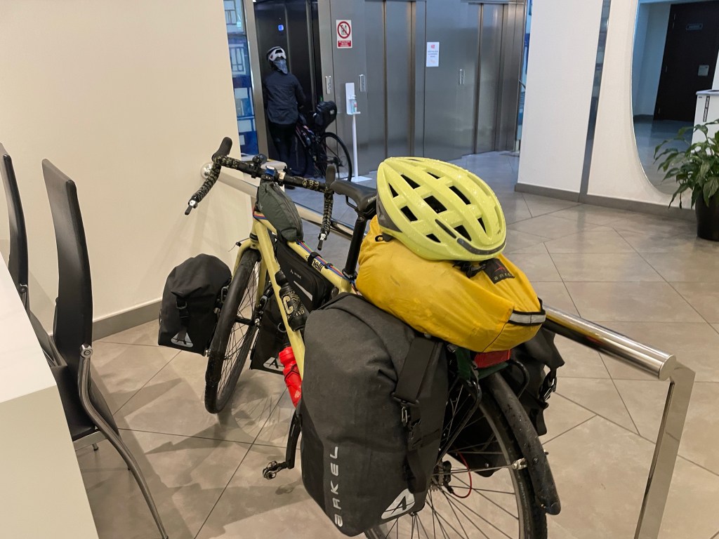 De retour à nos vélos. L’avantage de ce type de voyage, cet automne, nous permet d’éviter l´avion avec le désassemblage et la mise en boite des vélos.