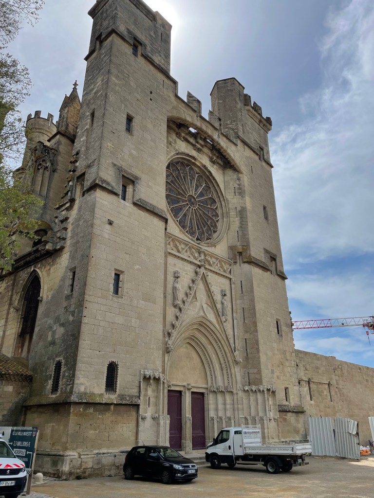 La Cathédrale de St-Nazaire domine la ville et derrière sa cour, un petit restaurant nous permet de faire une pause pour le lunch.
