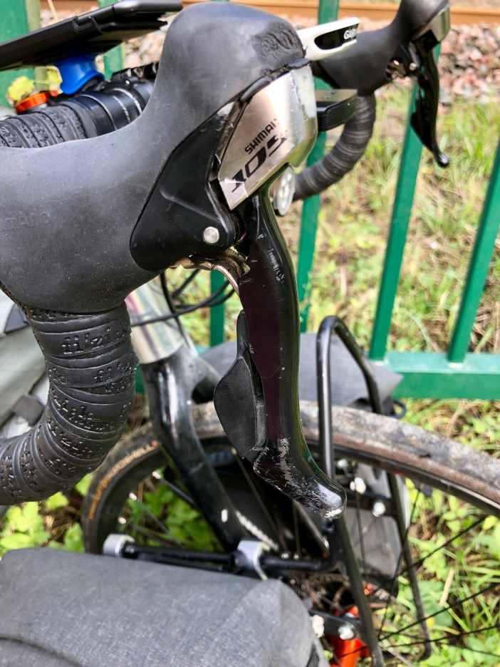 Je constate alors que j’ai laissé mes leviers pour démonter un pneu à la maison. Où avais-je la tête avant le départ?
