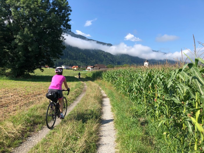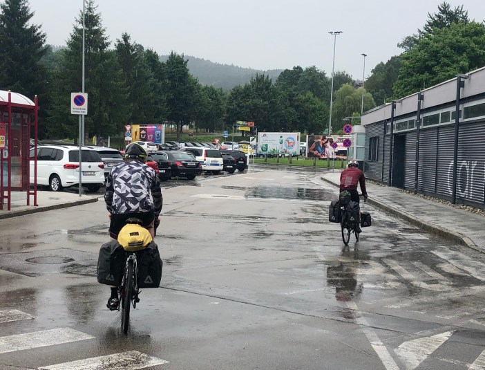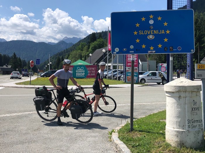 On retourne dans le centre du village pour une visite au magasin de vélo et nous voilà tous les deux garnis d’un souvenir banal de la Slovénie.